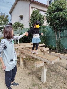 ③わらべ歌遊び『花いちもんめ』を楽しんだよ。