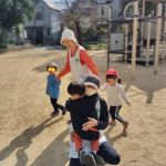 今日のわらべうた遊びは、快晴だったので柳公園でしました。