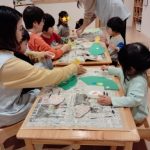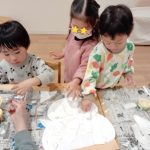今日の集団療育はみんなで大きな『鏡餅』を作りました。